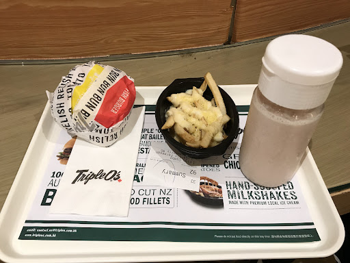 Read moreTriple O’s at Admiralty has good burgers, ok fries but excellent milkshake. The milkshake is what I go there for as it’s as close to those I find in North America as I can in HK. I had the fish burger, the garlic Parmesan fries and a strawberry milkshake in a bring-my-own-bottle.