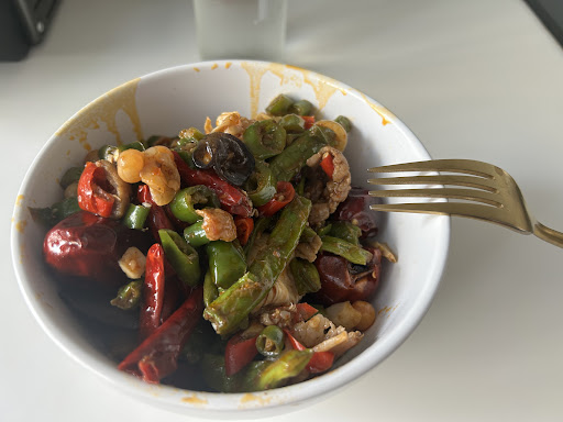 We got there about an hour before closing to have a quick dinner at 9pm. We were greeted and seated and ordered by marking items on a laminated paper menu, which was handed to us. The restaurants concept provides for an online ordering website, but we prefer direct communication with waitstaff. As a party of four we ordered a non spicy "dry hotpot" (resembling a stir-fry )with two types of meat, shrimp, noodles and four types of vegetables: cauliflower, green beans, leaf cabbage and baby pak choy. We also ordered a cold dish: Steamed chicken with Szechuan pepper sauce and two hot dishes: Mapo tofu and beef with celery as well as a round of drinks. The cold food arrived at the table before the beer, but it was well prepared and tasty. Together with the beer two bowls of steamed were served. And then a big bowl came with a broth, pig intestine, slices of curdled blood, vegetables, squid and lots of chillies on top. This wass clearly something we had not ordered, so we called back the waitress having not touched the big bowl to clear up the misunderstanding. The waitress then insisted that we had ordered this and started arguing, speaking in a completely inapproppriate manner and not trying to solve the problem. The markings with erasable felt pen on the laminated menu, which had been taken away to the POS were partially erased already, but it was quite clear that the rice had been added by her and the two warm dishes she had logged in the system were the two dishes following the dishes we had orginally marked on the menu. Unfortunately the waitstaff was unable to acknowledge this error and argued only loudly and impolitely with local street language. It took at least 10 minute, during which we ate the cold dish and started to eat the "dry hotpot", which also had two extra ingredients we had not ordered: Wood ear mushrooms and dry/crispy peas. We decided not to complain about that, since the fun of eating out was already spoilt for us and we did not want to make it worse. Eventually another, much friendlier staff, probably a chef came to out table, heard us out and took the wrongly delivered dishes off the bill. The two hot dishes that we wanted were not delivered, since closing time was approaching now. We ate and drank what got now, only interrupted by the staff delivering and cashiering the bill mid-dinner. In the end the first waitress left her workplace first and the other waitstaff came to the table when we had just put down the chopsticks to show us the google translation of "We are closing now!" On their...