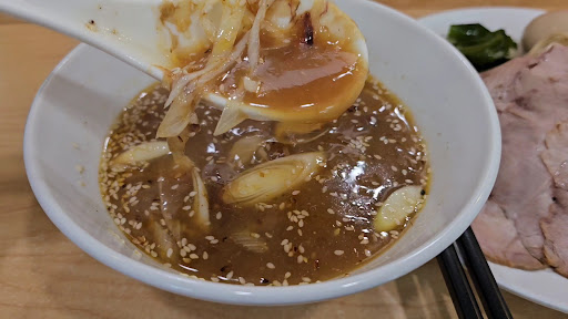 Randomly came across this restaurant while scrolling through Google Maps. Intrigued, I decided to visit it twice. The first time, I went with my sis, and the second time, I brought my entire family along. . Both my sis and I ordered the Spicy Fish Broth Tsukemen with Pork for our first visit. The fish broth had a delightful bonito aroma, its spiciness complemented the tsukemen nicely. The pork portion was generous and it was not fatty at all. Additionally, the egg yolk was runny.