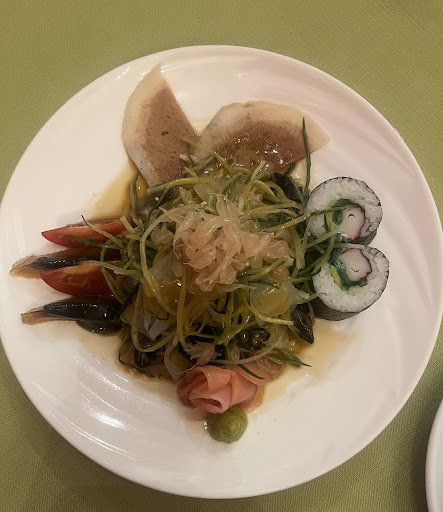 荷塘月色花錦繡:呢個菜色用咗荷蘭豆、木耳同其他時蔬,色彩繽紛,口感鮮脆,每一口都帶來新鮮感,絕對係健康之選。