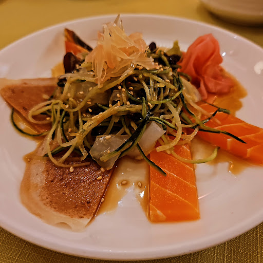 三文魚千色拼盤:雖然名叫「三文魚」,但其實係全素版本,色彩豐富,擺盤靚到不得了!用咗各種食材,口感清新,食落去真係好開胃,感覺健康滿分。
