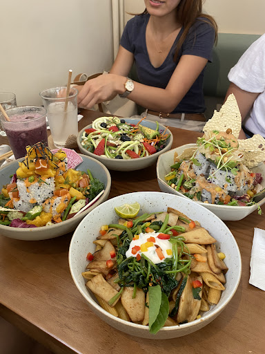 Food Ordered😋 Thai style stir-fried Local Morning Glory Penne Ligate🍝 🥬🌱 Local organic Okra Avocado Wild berry salad 🥗 🥑 Summer Madness Salmon mango sushi paradise 🥭🍣 Spicy Smokey chipotle avocado pomelo sushi volcano 🌋 Drinks 🥤 Iced latte☕️ Iced coconut water🧊 Lychee lemon soda🍸 Summer lover smoothie(blueberry, banana, dragon fruit, açai berries)🧃