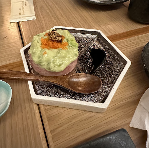 Read moreUnfortunately very slow service for warm dishes. The Sashimi rice came out quickly, but even after finishing this, the skewers had not arrived. The other main never came despite asking the kitchen to check several times. This was over an hour after ordering. The table next to us who sat down after us had a completely different experience: everything arrived promptly for them ( including skewers, and the same main we ordered) is this the experience of a table who orders a bottle of saké? The atmosphere was nice overall, Seating comfortable, crockery decent. In terms of what we ate, these were average. Service staff tried hard to apologise to us and the other tables who waited a long time as well, though they are understaffed as well. I wouldn't go back unless the kitchen shapes up more.