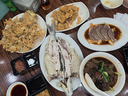 Read more2 floors of delicious traditional food that serves quick and hot. Good decent space for HK place but LOUD! Servers screams and curses loud in front of customers (to each other), customers are loud as well... Guess beer will do it! Biggest issue is when waitress took our order, we asked if mariebted tofu comes with the euck slices and /or combo with other stuff... She said of course... Never telling us that it's an extra $10hkd (not that it's a lot but still).... Food wise was amazing.... The pig blood was tasty... Brought me back to when I was young and eating it for the first time😘. Cold dark head fish was also yummy with no fishy taste. Oyster pancake was fill with oyster and crispy. The marinated duck with octopus was nice and tender and not salty. The salt and pepper (nine stomach fish) was extremely soft and tender inside while crispy outside. Go for the food and...