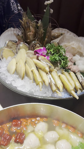 Read moreThis all you can eat hotpot place is for unlimited time period! It was $388 plus ten per head on a Friday night. We arrived at around 7pm and ate till 10pm. There are some fixed items like sashimi boat with very fresh scallop, sliced geoduck, cooked abalone, and salmon. From the six main pot, we have chosen the spicy chicken pot. It was very delicious and we ordered a second round with more spicy! Then it's hotpot time and we chose the soup base with fish maw. The beef and seafood platter that came with the meal was very fresh! We also ordered some beef balls, shrimp balls and dumplings. For dessert, each person can get an Häagen-Dazs ice cream cup. The place is very full, especially on the weekend, recommend to make a reservation if you...