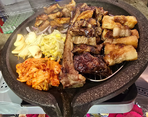 The menu features a great selection of premium meats, flame-grilled to perfection for an irresistible smoky flavor. Traditional side dishes and fresh lettuce wraps complement the barbecue, enhancing the authentic Korean taste.
