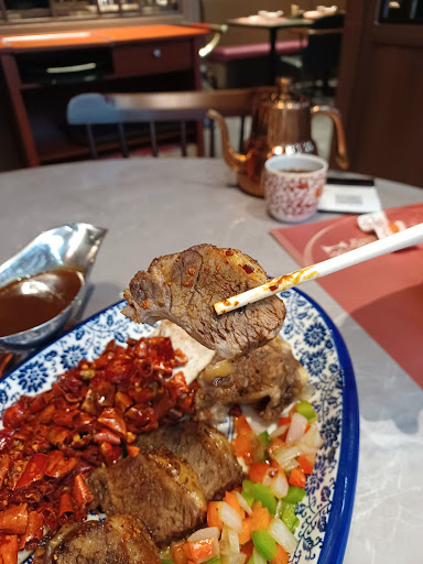 Read more今天我和好友到啟德體育園購買入演唱會入場券,順道遊覽這個新地標景點。原來除了體育設施之外,還有很多打卡熱點,更有三個大型商場:啟德零售館1,2,3號館。又到午膳時間,我們在2號館找到了一間新開業中菜館,裝修得古風典雅,一派貴氣,門前的菜單非常吸引,於是便入內幫襯。 精美午市套餐,包括前菜、湯、主菜、甜品及飲品,非常豐富,更有多款菜式選擇,新張期內還有半價優惠。 前菜: “涼菜三小碟”:麻辣雲耳、拍青瓜、上海肴肉 前菜的份量也不少,爽脆微辣的雲耳和青瓜,非常醒胃,配合肴肉來吃,雙重口感,特別滋味。 湯: “正宗酸辣湯” 材料充足,有筍絲、肉絲、蝦肉等,濃酸辣度適中,是開胃湯水。 “蟲草花螺頭燉雞湯” 原盅奉上的老火燉湯,打開盅蓋已經聞到香味。湯料豐富,有蟲草花、瘦肉、桂圓、螺頭等,味道濃郁甘甜,有家的感覺。 主菜: “秘製川味牛肋骨” 一大碟,讓人驚喜。牛肋骨已經起肉切好,每塊都厚切大件,旁邊鋪滿辣椒及酸甜配菜。肉質入口腍軟而富肉味,夾雜多種香料味道,味道令人一試難忘,是必選的菜式。 “京蔥爆牛肉” 爆得香口,夠鑊氣,還用慢火暖住上枱。爽口大蔥配嫩滑牛肉片,香氣十足,好滋味。 甜品: “千層糕” 紅棗椰汁千層糕,蔫韌口感,不太甜,最合我胃口。 “酒釀小丸子” 酸酸甜甜的酒糟,加上軟綿綿的湯丸,是富有特色的糖水。 餐廳還播放出我偶像的經典金曲,既享用高質美食,又聽到心怡歌曲,真是賞心樂事。店長介绍在盛事期間,餐廳營業至凌晨1時...