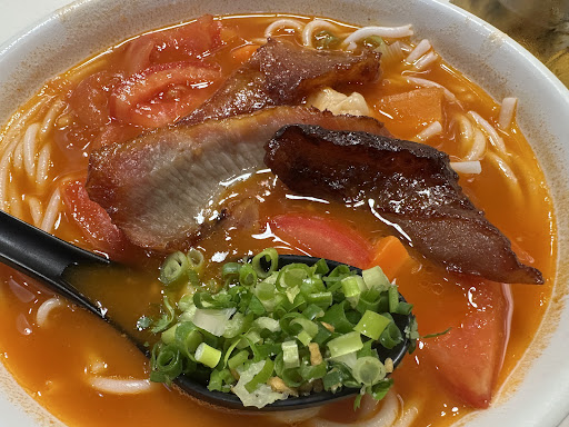 Read moreLocated just opposite Eaton Hong Kong Hotel, this small establishment boast some of the best beef brisket noodles and wonton. The menu includes beef tribe, beef, pork slices, wontons with different types of noodles, such as rice vermicelli, vermicelli, etc. You can have udon for an extra HKD10. I tried their tomato soup rice vermicelli with pork slices and wontons during dinner. No regrets! For HKD60, you are served with a big bowl of your order. The pork slices are thick and tasty. 3 slices altogether. Two wontons packed with shrimps. And many thick slices of tomatoes. The soup is rich and umami! Delicious! The staff is fluent in mandarin, English and of course, Cantonese. Menu has English description of the dish. Will be back for breakfast!