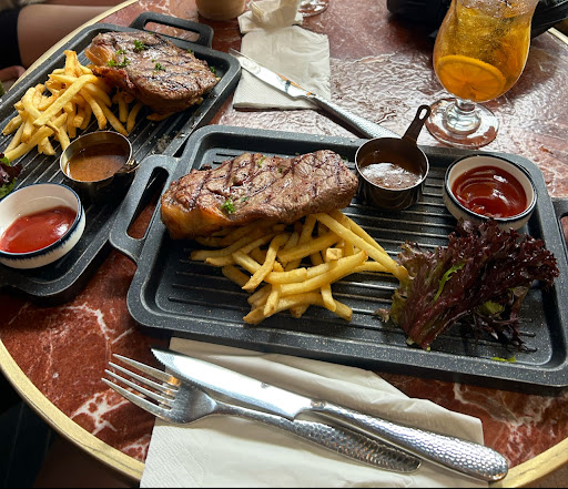 Let's start with the lunch set, which was reasonably priced. It initially seemed like a good deal, but now I understand why it was so cheap – the quality of the food was simply not up to par. I opted for the steak and specifically requested it to be cooked rare to medium rare. Unfortunately, when my steak arrived, it was disappointingly well done. Moreover, it was riddled with tendons, making it difficult and unpleasant to chew. The lack of attention to detail in preparing the meat was truly disheartening.