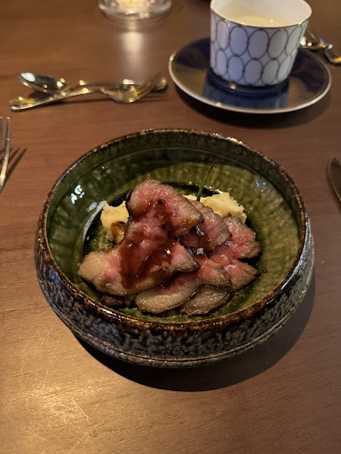 A5 Miyazakigyu Sirloin. Mine was great - fantastic piece of beef, overall nice dish. My partner’s well done beef and was again like the prawns - a nightmare. 90% + fat and totally unrecognisable to the beef I had. Such a shame as dish most looking forward to. Felt like something that could not be served medium or rare was punted out because harder to visually see when well done.