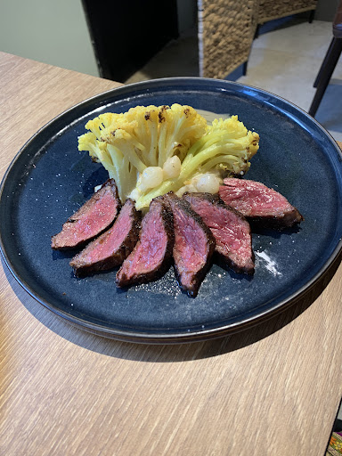 賣相非常吸引用上美國的封門柳,不但色澤鮮嫩,熟成度亦剛剛好,肉紋看似有點粗厚,但入口肉質軟淋👍,牛味濃郁而不韌,牛肉邊位焦香脆口,配上昆布牛油汁,口感特別。配菜有香滑牛油味薯蓉🥔,薯蓉加入了紫菜,所以味道不會太過單調,而椰菜花🥦跟清甜小洋蔥🧅仔作點綴,感覺味道清新,略嫌封門柳份量偏少,有點到喉不到肺的感覺,如果可以有多兩塊就完美了😂…哈哈