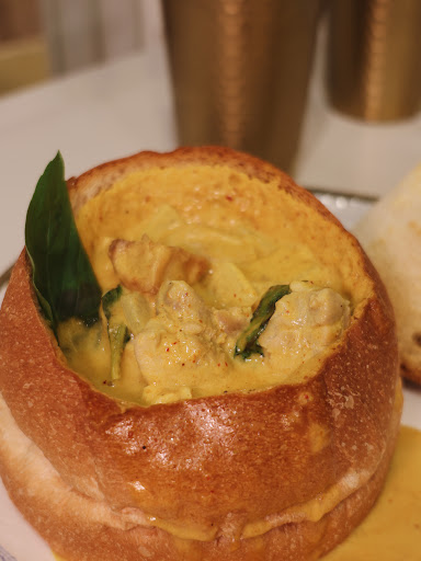 •𝐑𝐨𝐮𝐧𝐝 𝐅𝐫𝐞𝐧𝐜𝐡 𝐁𝐫𝐞𝐚𝐝 𝐰𝐢𝐭𝐡 𝐘𝐞𝐥𝐥𝐨𝐰 𝐂𝐮𝐫𝐫𝐲 𝐒𝐥𝐢𝐜𝐞𝐝 𝐂𝐡𝐢𝐜𝐤𝐞𝐧 The curry is rich in coconut 🥥 flavour, making it extra delicious! The bread 🍞 is soft and soaks a lot of the curry which makes every bite fulfilling!