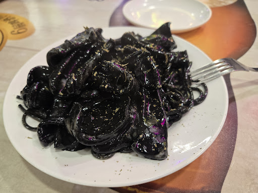 墨汁鮮魷意粉底$138 墨汁意粉係西餐,竟然大排檔食到,個墨魚汁煮得唔錯,個鮮魷好滑好彈牙同新鮮,意粉不輸平時去食西餐,可以一試啊…
