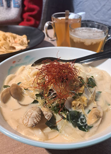 Intentionally visited this resto in Sai Ying Pun, which I had bookmarked since my time at HKU (and it has moved to a new location already LOL), with my family for lunch over the weekend. . My sis ordered White Clams in Udon with Yuzu & Pepper. The broth had an intense pepper flavour and the yuzu flavour was noticeable. The udon was quite chewy. There were a lot of white clams, more than 20 pieces! It's just like the story of five loaves and two fish🤣. They were fresh and savoury.
