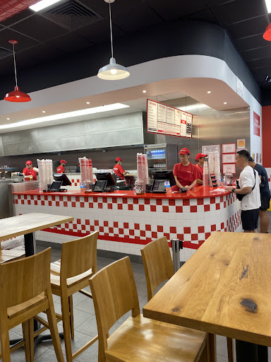 By a country mile, the best dining experience I've ever had - no hyperbole. Visited Wednesday got a very nice hotdog, bacon cheeseburger and fries. The food came freshly made and was delicious. Fries? Only about 4x more than I've ever gotten anywhere else. Peanuts? Free... Burger? Extra delicious and juicy. But the best part.. The Service was top notch standard, the high quality I would expect from anywhere. So good that I spoke to the manager and complimented them on a great experience. Next day - I went back with my daughter after school. This time, the staff recognized me and were so happy to see us back. We ordered another fantastic meal but this time we're very graciously treated to a free milkshake for my daughter and extra special fries by the manager. All that on top of already outstanding customer service. Staff member Daisy made us feel like VIP by providing excellent table service and assisting with my daughter and the high chair. We ended up personally meeting each staff member, shared stories, took photos together. I have spent close to 20 years working in sales, management and customer service focused positions. I've lived in 4 countries across the world. This experience at Five Guys was not just the best dining experience I've ever had anywhere.. it was easily in the top 3 CUSTOMER EXPERIENCES I've ever had.. and that is the secret to a great business. Well done Mandeep, Anna, and your team. Fantastic service, great food. Don't let the standard drop -keep aiming higher!
