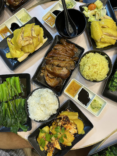 Really good hainanese chicken rice. Recommend getting a set with all 3 of the items they sell (hainanese chicken, pork knuckle and stewed oxtail). They also have a spicy version of the hainanese chicken rice.