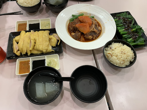 Read moreA local favourite specializing in Hainanese Chicken Rice. We tried their 2-person set meal with Hainanese Chicken (half) and braised oxtail. The meal includes soup, lots of Chinese broccoli, and chicken rice. Yummy! No MSG! It was a full house on Sunday night! While there are 3 dish choices, they are the best for...