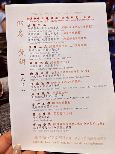 Read moreReally surprised by the amount of positive reviews on here, OpenRice and Instagram. We tried the signature omakase 9-course menu, and oh boy the flavours are as weird as how they named the dishes. Yes, how each course was being put together was conceptually creative, but the execution was just utterly bad. For instance, we were supposed to dip a piece of fried fish into a red wine sauce that taste like a dessert topping which was just awful. Entire menu also lacks theme overall - it goes from canto region delicacies, then to M5 wagu beef served in Japanese style teriyaki sauce with wasabi, then it went on to a Shanghainese broth. Ingredients were good but definitely need to give more thoughts into the composition...