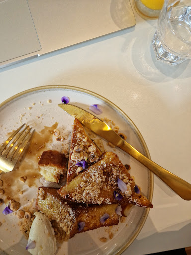 The food and drinks I had: ● Mango smoothie ☆☆☆☆☆, nice and refreshing. ● Hazelnut maple frensh toast ☆☆☆☆ a little bit too sweet for my taste, but the bread was delicious. You do get 2 big pieces of loaf broken up into 4, so keep this in mind if you have a small appetite. ●Chai latte with espresso shot ☆☆☆☆☆ It was great, and the amount of chai was just perfectly balanced. ●Scrambled eggs on Sourdough ☆☆☆☆☆ the eggs were fluffy and creamy. You get the option of edding extra salt and peper if necessary. ●Green tea ☆☆☆☆☆ the tea, was nice and light after all the food and drinks I had.