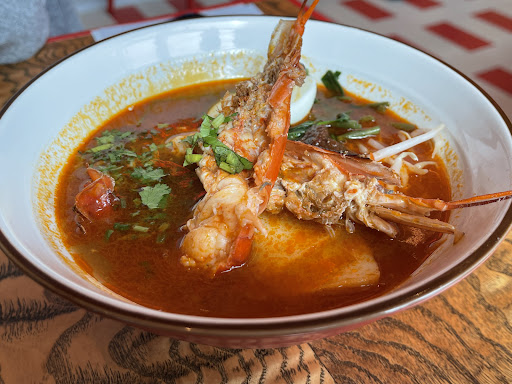 The menu had quite a few options, and the prices seemed reasonable. I ordered three dishes, but despite the restaurant being nearly empty, it took a while for my beer to arrive. The first dish served was the laksa, which I found to have a surprisingly small portion. The cucumber strips on top didn’t seem to add any value, and the amount of rice noodles was very little. There were a few frozen, shelled large shrimp, along with some tofu and fish slices, with a bit of bean sprouts at the bottom. The broth had no shrimp flavor; the spiciness was merely in the color and a hint of heat, making it quite unfulfilling.