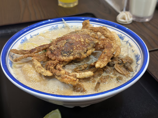 Got the soft shell crab + clam grandpa secret laksa. The soup is excellent with coconut milk and the mixed of vermicelli and oil noodles (油麵)soaks it up. It was not super spicy - if you can eat Toast Box's laksa, this is definitely doable.