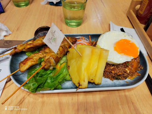 This restaurant is a vietnamese restaurant serving vietnamese food like fried rice, hainanese chicken rice, pho, curry and other snacks and dishes. They also serve drinks but the drinks are quite expensive. The restaurant has an indoor seating area with aircon and an outside seating area for people on wheelchairs and people who brought their dogs. (The mall which the restaurant is in requires all dogs to be in a stroller. If you do not have one, they will provide one for you) The staff were friendly, and waif time was decent and the atmosphere waa great. The food is good and fhe prices are decent, just a tiny bit expensive usually HKD80+. I personally recommend the fried rice as it was pretty good with a fried egg on top. I always get the Satay Chicken Stick And Japanese Egg With Steam Rice but i always change the rice to the shredded chicken fried rice because i feel like steamed rice is a bit too bland.