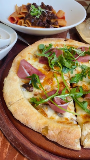 •𝐅𝐮𝐧𝐠𝐢 & 𝐀𝐫𝐮𝐠𝐮𝐥𝐚 𝐒𝐨𝐮𝐫𝐝𝐨𝐮𝐠𝐡 𝐏𝐢𝐳𝐳𝐚 This is my first time trying a sourdough pizza, 🍕 and it tastes interesting! Covered with lots of cheese and ham on top while the arugula gives a rather refreshing taste!