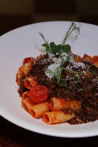 •𝐁𝐫𝐚𝐢𝐬𝐞𝐝 𝐁𝐞𝐞𝐟 𝐁𝐫𝐢𝐬𝐤𝐞𝐭 & 𝐓𝐞𝐧𝐝𝐨𝐧 𝐑𝐢𝐠𝐚𝐭𝐨𝐧𝐢 The braised beef brisket is so soft and well marinated! 🐄 The rigatoni was chewy and satisfying to have!