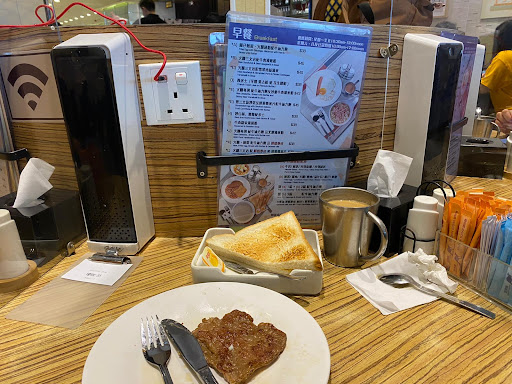 Great food the borscht soup is fantastic with a bread with some butter it’s the best in Hong Kong I love their Ice lemon tea, their black pepper cow tongue rice perfect . The breakfast is phenomenal instant noodles with luncheon meat and chicken wings or other options like char so soup spaghetti, their toast and...