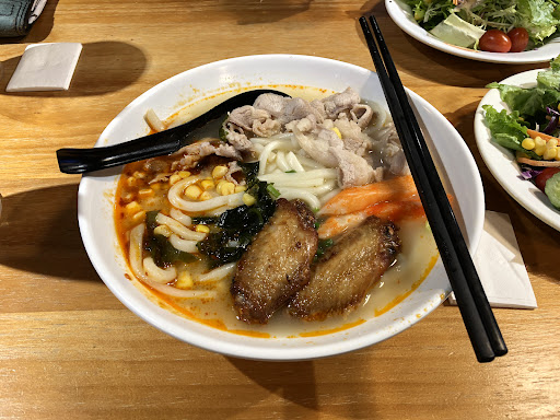 The spicy udon was quite disappointing. As you can see in the attached photo, the thinly sliced pork was over cooked. The soup base was very light coloured and had no flavour at all.