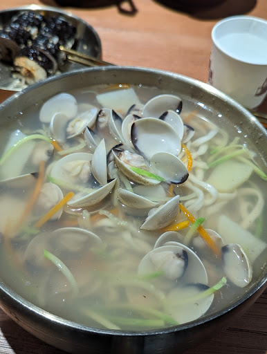 The noodles are awful, just saltiness for both bowls of soup we ordered. I ordered clam noodles, just saltiness, no umami at all. The little kimbap is either undercooked or overnight left over because the rice is hard and crunchy.