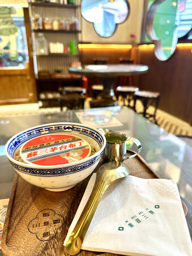 I tried the signature 𝙈𝙤𝙪𝙩𝙖𝙞 𝙈𝙖𝙩𝙘𝙝𝙖 𝘾𝙝𝙤𝙘𝙤𝙡𝙖𝙩𝙚 𝙋𝙪𝙙𝙙𝙞𝙣𝙜, topped with a chocolate plate mimicking the Moutai bottle design—so cute and eye-catching 😍! The soft, mousse-like pudding paired with rice crunch was delightful. The chocolate flavor and matcha sauce were rich, making it quite filling, though I found the Moutai flavor a bit mild for my taste.