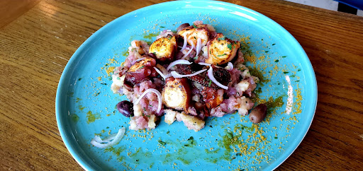 I came here on a Saturday night around 7 and it wasnโt full but I have to say the food is pretty impressive..starting with the bread which was so fresh with olive inside and I have ordered a starter and a yellow chicken to share.. the chicken is well cooked with a very strong smoky taste ..it served with some potatoes and definitely enough for two people.. the restaurant also face to the sea and so the atmosphere is pretty amazing ..the only issue with this restaurant would be the ventilation because they have got an open kitchen and the oil taste is pretty strong indoors.. compared with italian restaurants in wan chai or Tsim sha tsui..this is definitely a better choice because it is much spacious and the...