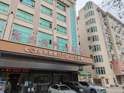 20250622傍晚抵達惠州 朋友介紹安排來惠城區豐山路3-4號植物園對面的「富杰海鮮大酒樓」晚餐 一樓是普通席 二三樓是豪華包廂 餐前大啖惠州名產荔枝 客家美食 招牌菜有鹽焗雞 土窯豬(富杰金豬) 釀豆腐 金沙炸菇 東江蝦炒韭菜花 最驚豔的竟然是蛋炒飯 秈稻粒粒分明且Q彈超級好吃...