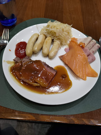 The in house buffet restaurant in Novotel Citygate Tung Chung, boasts one of the biggest breakfast spreads ever seen. At a cost of under £10 per person, there's no reason why you cant fill up (and out) on breakfast. The lunch buffet, is a somewhat muted affair, and given that the price difference for the dinner isn't far off, I'd go have dim sum and save your belly for the dinner buffet. Dinner bookings are a premium, expect to book upto 2 months in advance for weekend slots, especially in peak holiday seasons. The selection for dinner justifies the extra £4/£5 over the lunch, and its a bustling and at times jostling affair, with the bus loads of china tourists that flood the Citygate outlet centre and make use of the buffet for their dining needs. But dishes are rapidly replenished, so fret not. Like the breakfast and lunch buffet, there is a chef at hand to make fresh desserts, omelletes and whichever speciality is on offer that evening. The downside of the ever popular dining place, is that quaility of the choices on offer have drastically changed. When first openned it was not a rarity to see live oysters, snow crab legs and crayfish, now its replaced by greenshell mussels (previously frozen) and if your lucky an escargo or two. But seafood or the lack thereof aside, there is a modest selection of other mains to temp the taste buds. desserts are popular, what is less admired is the way 'self service' of the cakes means the last few slices resemble more of 'eton mess' and most of the toppings have been cherry picked off by the inconsiderate. Although ice cream is available, a self service ice cream machine would be a welcomed addition. Tea, coffee and various hot beverages are included, as well as some fruit juices. Soft drinks and alcohol as ecpected isn't in the perks of the reasonably priced dinner buffet. Overall its a 3.5 (i'm feeling a tad generous) out of 5. And i'd at least recommend it. Best value for breakfast, but avoid lunch times here, theres better...