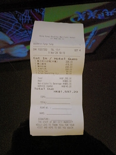 Visited Man Ho Chinese Restaurant twice with my family in Feb 2019. The standard of Chinese food served right here is outstanding. The atmosphere is so relaxed and quiet, not the common adjectives to describe a Chinese Restaurant (normally it’s very lively, loud and crowded when you engage in ‘Yum Cha’) The table we sat looked over to the newly built Boundary Crossing Terminal for the Macau Zhuhai Bridge, charming to look at from a distance. Dishes we ordered include: Peking Duck, Steamed Fish on Floater Leaf, Tantan Noodles, Sesame Rice Balls etc. The waiting service is also exceptionally attentive and welcoming. Prices to dine here will exceed HKD$200/person, but you can get discounts as a club Marriott member.