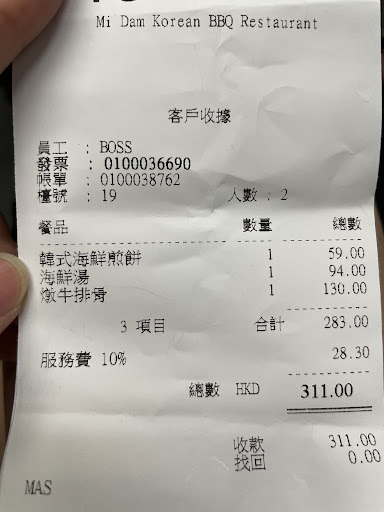 Okay, regarding the food, first of all, not many Korean restaurants serve the Korean appetizers nowadays in Hong Kong but this one does and they are decent. And they always serve food in reasonable time after order placed, for people who is so Hong Kong type of always time chasing this is a place for you.
