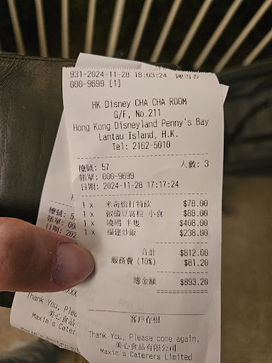 Read moreThe first staff who served our table wasn't quite fluent in English. We ordered 2 bowls of small congee / stir fried vegetables with garlic / pork / fried rice and tea. Stir fried vegetables turned out to be a dish of just plain boiled broccoli with no garlic. We had to ask to re-do it. And then, the congee, JUST 1 bowl came to our table. We had to ask them to bring us 2 bowls as we ordered. BUT. as soon as they gave us another one and I started to eating it, someone who looks more like a manager came to me and tried to TAKE AWAY the congee from our table, saying that he should take it away because we ordered just ONE!!... I had to tell him again that we ordered TWO so you go to the Pos and fix the order if you need, INSTEAD of taking away the customer's already eaten food!... By the time we pay the bill for our table, I asked him whether if I can get the cast member discount(as I'm eligible to get discount every restaurant in the Disney resort and have used that privilege for the whole day there.) BUT HE SAID NO, without explaining me properly. He just said TODAY IS NO CAST MEMBER DISCOUNT. and that was all. Food? mediocre and overpriced. The overall experience in this particular restaurant was the worst experience in my...