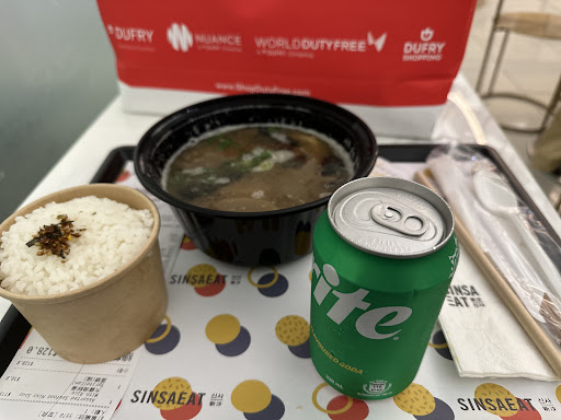 I ordered kimchi pork stir-fried vermicelli and fried chicken 🍗. First of all, about the vermicelli. stir-fried on the spot. very hot enough, the taste was rich and moderate. it's not bad, you can try it. The fried chicken is very tender and not dry. It's delicious with sweet hot sauce. The sauce is not spicy, and children can also dip it. However, because my children also on this trip, the clerk also provided me tomato sauce,very well. You might as well try this Korean meal before boarding...