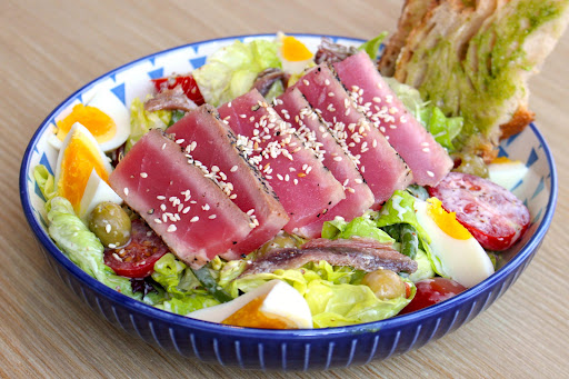 Read moreOne of the best French restaurant in town. The price is reasonable especially during teatime. All afternoon tea sets are served with garden salad or daily soup which was Clam Chowder that day. We ordered a Pan-seared Tuna Salad ($98) comprising of plentiful ingredients such as seared tuna fillets, boiled egg, anchovies, Kalamata olives, cherry tomato and mayonnaise. The crispy french galette was as good as always. I ordered the grilled chicken one which was served with a whole thick chicken thigh fillet, fried egg and Ratatouille and it was only $60! Yet, my all time favourite Norwegian Salmon Fillet ($135) was a bit disappointing as it was a bit overcooked and not juicy enough. No meal is complete without dessert so we ordered a Apple & Lemon Pound Cake ($65). The cake was heated up, making it crispy while being dense and moist inside. The sour-sweet strawberry puree also made it more refreshing and it was so satisfying to eat it with a scoop of...