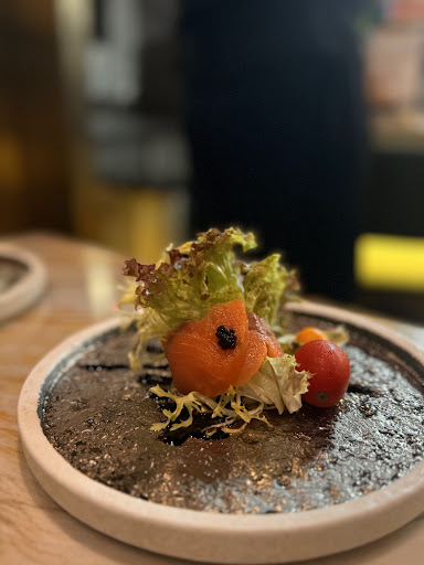 · 煙三文魚沙律 佢嘅煙三文魚沙律嘅調味好出色,對我嚟講食得好舒服,柚子汁同埋黑醋汁平衡得好好,隔離仲有個酸酸甜甜嘅龍珠果俾你開胃先。而佢嘅魚子醬點綴都好好,冇咩好挑剔嘅地方。