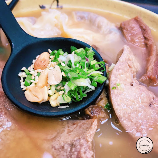 It was good the spring onions and peanuts are served on the ladle.