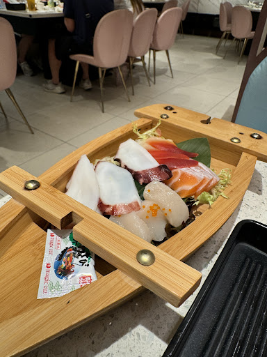 All the ingredients were ordered through a mobile app, and there were only a few cold appetizers and sauces available outside. We started with sashimi.