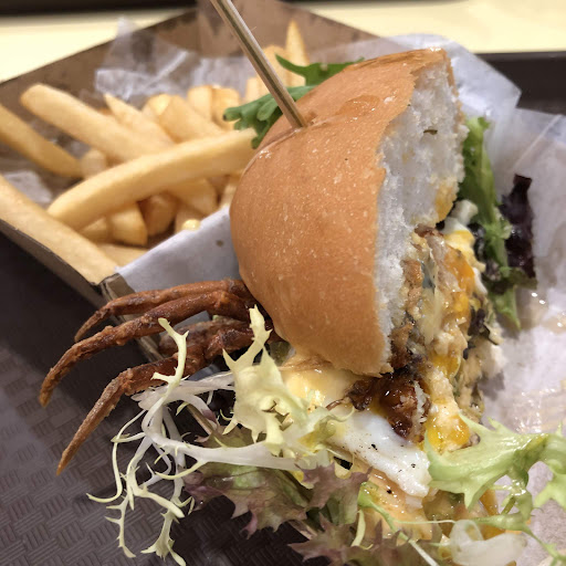 Read moreHidden gem in the Tak Po Mall! Everything was made to order. We ordered a soft shell crab burger. A whole crab for the burger, with fresh veggies and tasty sauce. Thumbs up! They have a wide of selection as well as home made beef burgers....