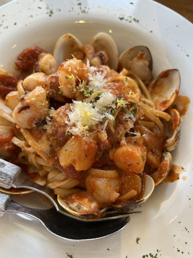 Wanted to find a place to chill with my friend on a weekday, saw this restaurant on some online content so wanted to give it a try. When we arrive we were seated at a table in the middle of the restaurant. We ordered a pepperoni pizza and also a seafood linguine to share. After we order our food, we saw a table left on the side and we ask if we could move to the other table but the tight jeans guy said we can’t since after we are seated and we can’t move our seat. (At that time there wasn’t anyone waiting for a table) Anyway, The pizza was delicious, it’s a thin crust pizza. Just right for 2 people. Seafood linguine was just so so… the seafood inside was on the small side, just an average linguine. Nothing like wow…