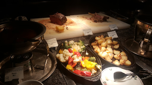 We were seated right away and given 1.5 hrs to eat. We were quite impressed with the selection. Salad Bar with Sushi and Sashimi. Cheese and cured Meats. Raw bar with crabs, fresh shucked oysters, crayfish, mussels, whelk and cocktail prawns. Hot Dishes was quite a nice selection soon. A big corner of Indian food, a Chinese roasted meats area, Spanish Seafood soup area, Lobster Laksa, Truffle Pasta, Grilled Tenderloin , lamb chops and Prawns. Roasted Steak and Lamb Leg. Double boiled Soup and Chinese dishes too. Overall, great selection. Big Dessert selection with a Hagen Daas Ice cream bar, chocolate fountain with fruits, French pastries and Chinese desserts. Unfortunately the waffle and Crepe wasn't available. The sashimi was very good. Very fresh. Oysters were not chilled enough, crabs and prawns were pretty good. Meats was fresh and sweet. The Laksa was very tasty but Lobster a bit overcooked. The Truffle and Caviar pasta was ok, a bit bland, needed seasoning. I noticed the lady staff at that station seemed to be training a young man but spent most of the time complaining about her job. Not sure that the quality was affected by not paying attention. The Manager tho was awesome. He noticed right away if ppl are waiting, jumped in to help as much as he can. My fav was the Spanish Seafood soup, it had a huge clam, razor clams, prawns, mini lobster tails, another type of clams too. The Garlic toast was so good with it. The lady pastry chef was also very nice, she explained different pastries and gave great suggestions. The buffet came with Tea and Coffee as well, we chose Cappuccino and Latte. We paid $740 for the 2 of us. Thanks Eatigo! Excellent deal. Great Service with Good Food. Definitely...