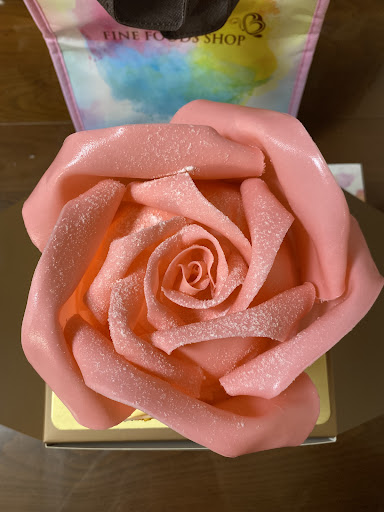 Looking so good, even better than my expectation, the color is so bright pink, and even petals are making of milk chocolate and they are yummyyy too lovely flower petals loveya it really takes high technique to finish it, the curve isn’t easy to bend like this cutie onee, and i think the best of pink rose cake is it’s delicate rose flower shape and yummy pink petals