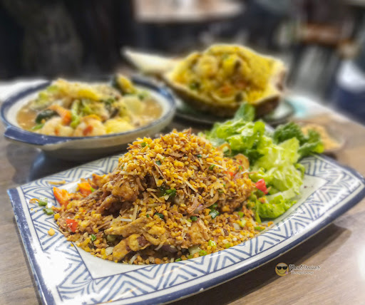 // Authentic Thai YUMS🍍🍴 // . I've always been obsessed with Thai cuisines for their strong aromatic components; and this restaurant has to be one of the top ones.😜😜 From savory & spicy dishes to sweet & luscious Thai desserts; you name it, you have it!😋🤤 Quite drool-worthy for an authentic taste!👅 . ▪Deep Fried Soft Shell Crab🦀▪[HK$88] Nothing's more satisfying than having a crispy soft shell crab covered in savory and aromatic fried garlic and coconut shreds.🥥😍 The whole thing was crispy and crunchy, and slightly spicy as well, would be the perfect dish for a bowl of rice tho!😝 Wrapping in lettuce could balance out the greasiness as well! Finger lickin' good for sure!👅👌🏻 . ▪Fried Rice w/ Pineapple & Seafood🍍▪[HK$98] An appealing and eye-catching dish that serves fried rice in a half-cut pineapple.😜🍍 Every grain of it was covered in golden color; lovely combination of flavors and texture with meaty shrimps and squid.😋 And the mix of raisin to this dish certainly added a nice touch~😚 . ▪Fried Flat Rice Noodle in Gravy w/ Seafood🍜▪[HK$88] The flat rice noodles was full of flavors and ingredients!😍😍 Every slurp was covered in luscious gravy and with mouthful of veggies and seafood.🦐 Even though you could get a bit thirsty after it, but still worth it for sure.🤪 . // 10% Service...