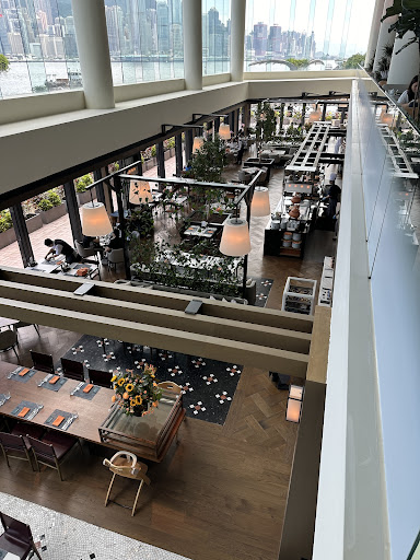The ambiance of the restaurant is generally pleasant, I really like the high ceilings and picturesque views. However, I feel compelled to point out a potential safety hazard. The first few steps of the staircase leading down to the buffet area are poorly lit. This could easily lead to accidents, especially during evening hours when visibility is further reduced. Management should address this issue to ensure guest safety.