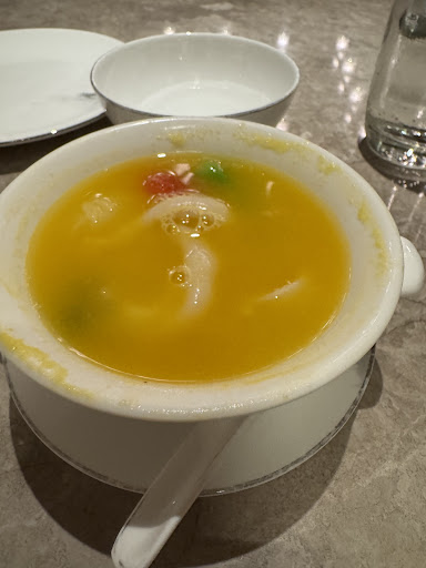 This is an exquisite Chinese restaurant serving food with a craft and original taste. The Cantonese restaurant basically designed a lot of special dishes which can only be cooked by skilful cooks with exceptional impressive presentation too. Super rare dish liked marinated water melon, a blend between savoury and sweet, interesting, should try. the braised beef inside pear was hard to cook but beef was very tender but the pear probably given the favour to beef, became plain. Taste wise, would expect more. Same for the winter melon and marinated vegetable inside, it definitely was a photo moment but the taste is very light. This is probably where the original taste came from but would be tiny bit better if it is seasoned a bit. The chinese style meatloaf was quite heavy a dish with an salted egg yolk inside, would be better if they can be served half as an option. The hotpot rice is a must have, scrumptious. Staff are super helpful after all it is inside a hotel. Overall, it is really a great restaurant to capture art of Cantonese cooking. It is relatively pricy restaurant but bearable. Expect a t bit more though. Still, not a bad choice ...
